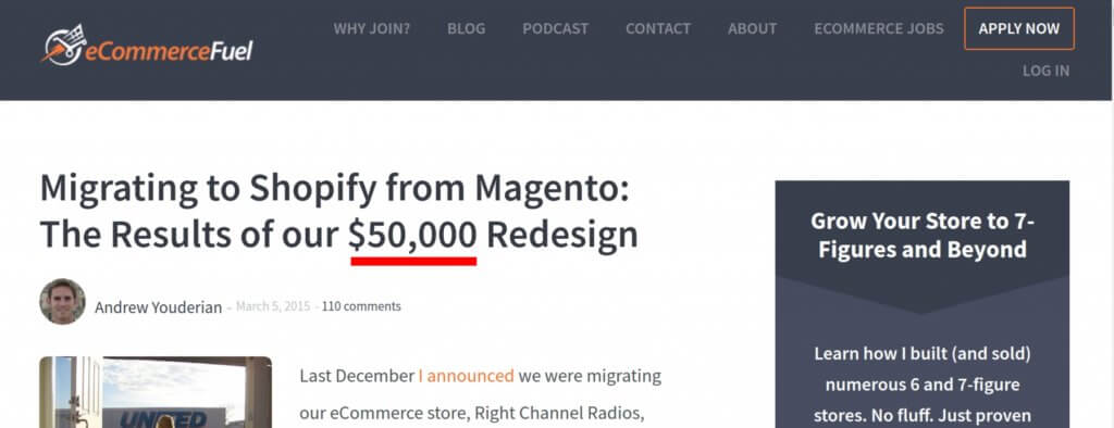 Es kostete eCommerce Fuel insgesamt $50.000, um von Magento 1 auf Shopify umzusteigen (sie hatten dabei Unterstützung von Shopify selbst, was die Entscheidung für den Wechsel beeinflusst haben könnte).